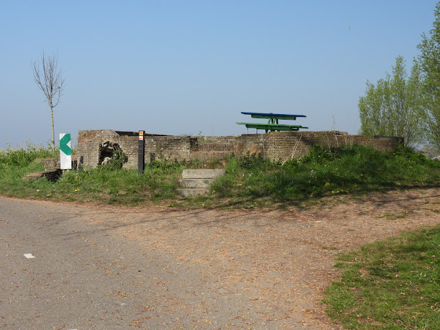 | de ruine van een molen. volgens Peter liggen de wieken en onderdelen nog opgeslagen in een loods maar of hij nog opgebouwd gaat worden dat betwijfelde hij. |